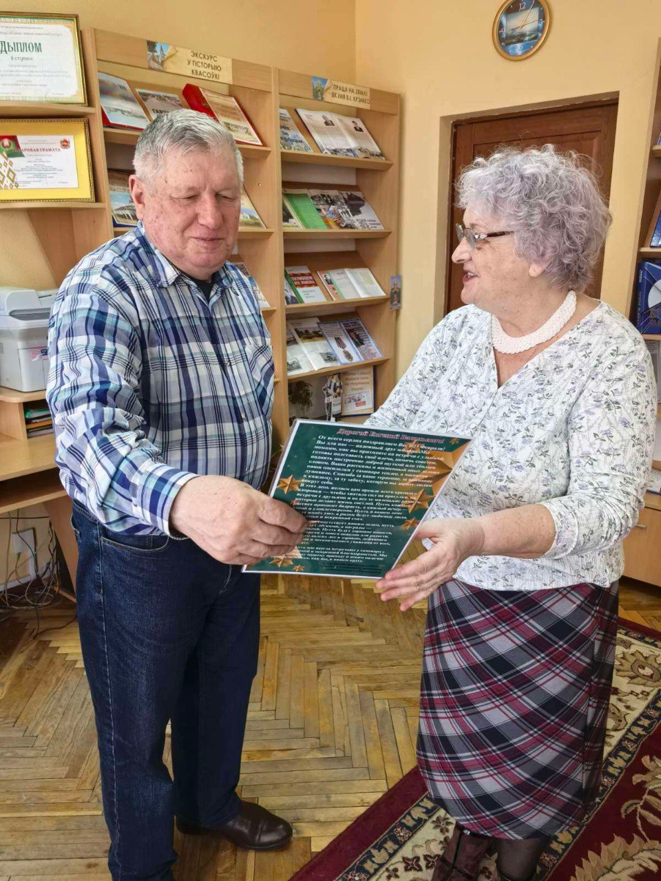 📖В Квасовской библиотеке состоялась развлекательная программа «Армейский экспресс»🇧🇾 ⭐На вечер был приглашен Владимир Александрович Бахмач, председатель Квасовского сельсовета. В честь Дня защитников Отечества и Вооруженных Сил Республики Беларусь ему выразили искренние поздравления и благодарность за усердный труд и вклад в развитие сельсовета. Теплые слова звучали и в адрес активного участника объединения Евгения Васильевича. 🪖Участники с удовольствием состязались в знании армейских пословиц включились, отвечали на вопросы викторины «Разведчики памяти». 🧓🏻Женская половина участниц представили юмористическую сценку «Новые белорусские бабки», которая задала позитивный тон встрече. ✅Кульминацией вечера стало выступление Евгения Васильевича: под аплодисменты он возглавил импровизированный «женский батальон». Праздник завершился исполнением песни на мотив знаменитой «Песни летчиков✈️». Мероприятие прошло в душевной атмосфере, подарив участникам заряд праздничного настроения.