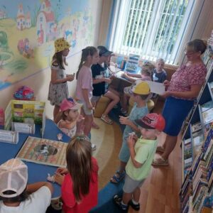 14.07.2024 В гостях в Индурской библиотеке побывали дети начальных классов из оздоровительного лагеря “Летний DRIVE” г.п. Россь.