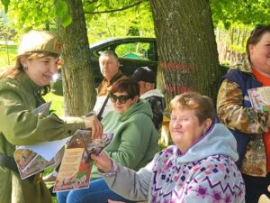 30.04.2024 Работники сектора внестационарного обслуживания населения информационно-библиотечного отдела и передвижной культурный центр провели акцию "Военная агитбригада: фронтовой экспресс " в деревнях: Жукевичи, Мильковщина, Михайловка.