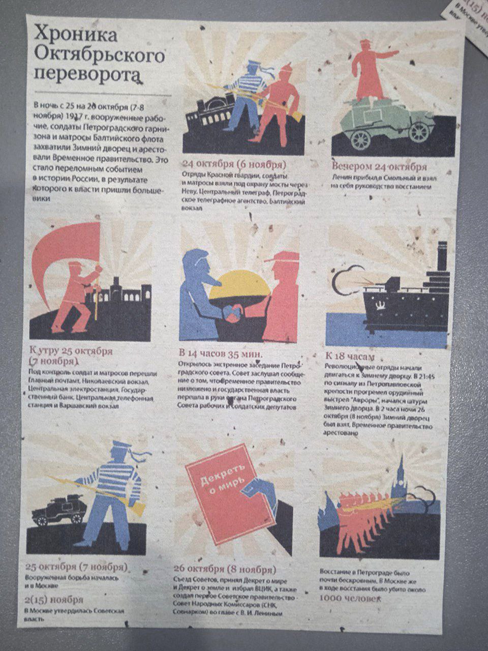 Читатели библиотеки находили в своих книгах листовки с хроникой Октябрьского переворота, они стали напоминанием о предстоящем важном дне в нашей истории. Ведь листовки играли ключевую роль в Октябрьской революции как основной инструмент агитации и политической пропаганды. Они использовались для мобилизации сторонников, информирования о событиях и распространения идеологии, охватывая как крупные города, так и более широкие территории. Часть листовок была специально нацелена на малограмотных и безграмотных крестьян и рабочих. Их формат включал рисунки с поясняющими надписями, что делало их понятными даже без умения читать. Наибольшее число листовок было издано в период подготовки Великой Октябрьской социалистической революции.